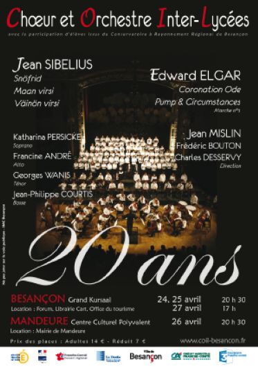Les deux œuvres d’ELGAR sont intimement liées par l’utilisation du plus célèbre des thèmes du compositeur : « Sapristi, mon vieux, j’ai un de ces airs dans la tête » écrivait-il en 1901 à A.J.Jaeger. Quelques mois plus tard il déclarait : « Je tiens un air qui va tous les étendre, les étendre raides. » Lorsque le roi Edouard VII l’entendit, il demanda à Elgar d’adapter des paroles ce qui fut fait pour ce Coronation Ode donné en 1902 pour le couronnement du roi. Quatre solistes renforcent la formation chœur et orchestre.