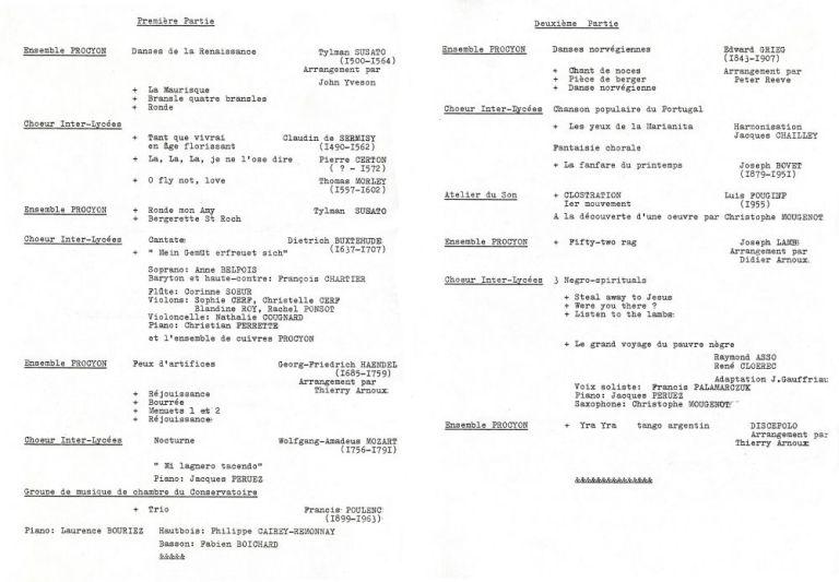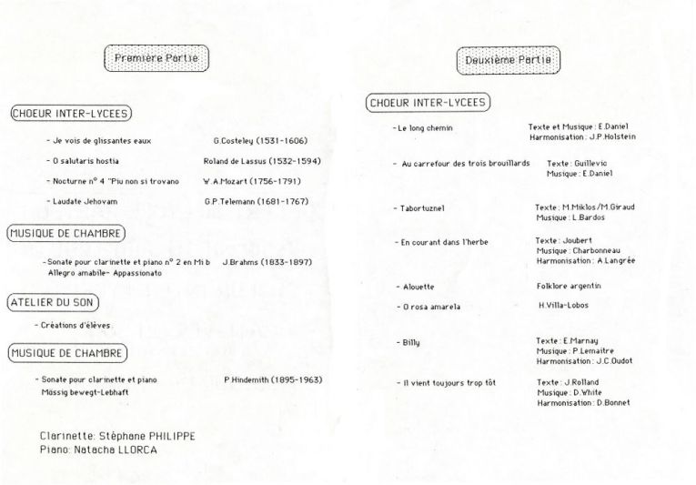 En 1988 nait le Chœur Inter-Lycées, retrouvez ci dessous les programmes des premières années. L'orchestre fait son apparition en septembre 1991 et participe au projet au 1992. Le CIL devient le COIL !